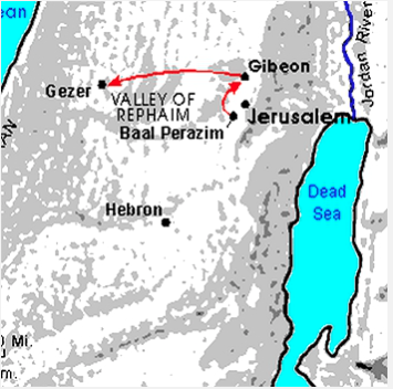 | 5. And in the fourteenth year came Chedorlaomer, and the kings that were with him, and smote the Rephaim in Ashteroth-karnaim, and the Zuzim in Ham, and the Emim in Shaveh-kiriathaim, | REPHAIM 2 names in the Bible From Strong's 7497, rapha, from 7503, raphah, sink and relax. All the gigantic races of the Canaanites were call Rephaim. There were Rephaim beyond Jordan, at Ashtaroth Karnaim, in the time of Abraham and in the time of Moses. Og king of Bashan was of the Rephaim. His descendants dwelt in the land of Canaan, (Joshua 12:4.) They lived in the city of Gath in David's time. (1 Chronicles 20:4-6) Goliath was a Rephaim, from the family of the Anakim. They were strong and violent. 2. The Valley of the Rephaim is mention in Joshua 15:8. It is where David defeated the Philistines. (2 Samuel 5:18) It is described as a was a broad valley, beginning near the valley of Hinnom. It extended several miles south-west from Jerusalem, where it narrows and continues towards the Mediterranean. It belonged to Judah, but was near the border of Benjamin. In Job 26:5; Psalm 88:10; Proverbs 2:18 the word is rendered dead things. Rephaim and Valley Of; Valley of the Rephaim photo; Valley of the Rephaim map